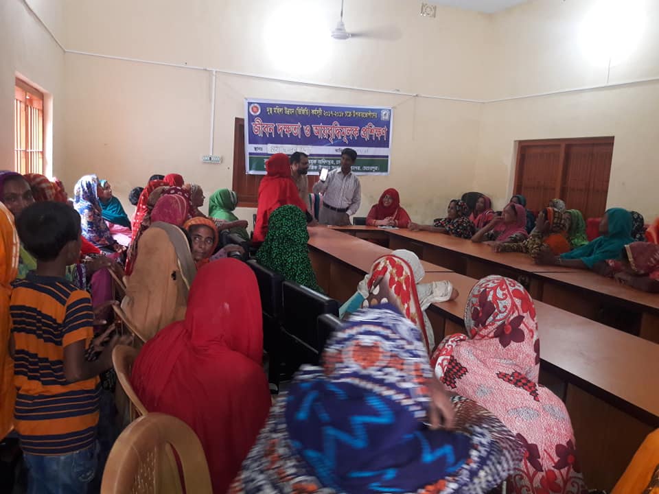 On July 31, 2018, Subah Samajik Unnayan Sangstha, in collaboration with the Department of Women Affairs, organized a life skills and income-generating training session for VGD (Vulnerable Group Development) members.